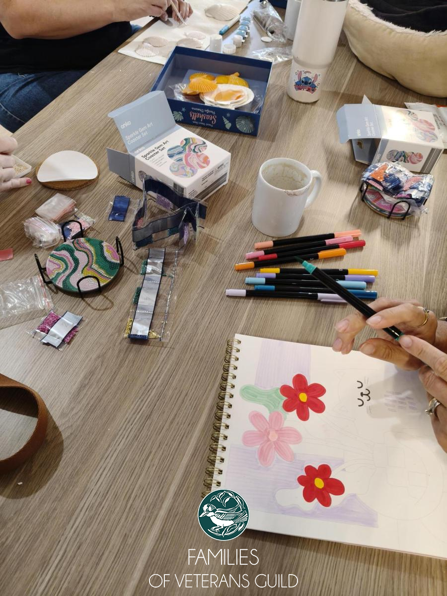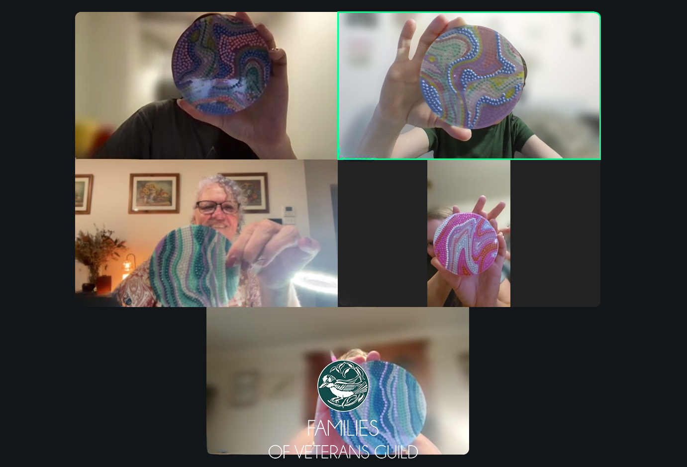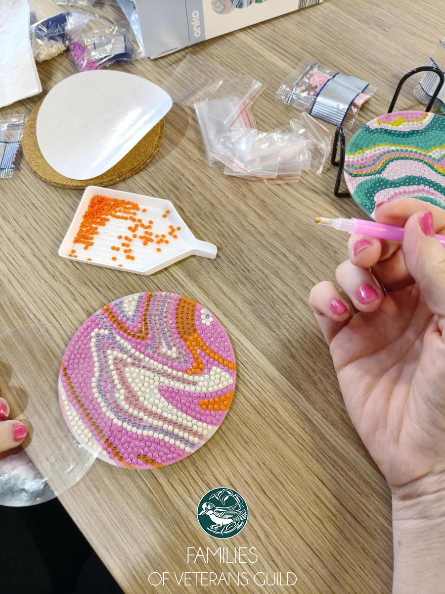 In early February, war widows and families of veterans came together over Zoom for an evening of Gem art! All hands meticulously worked on picking up and placing colourful gems onto corresponding numbers on the coasters. A participant described it as ‘being in the zone’, feeling as if they could do it all night. It was able to provide a setting to talk with each other mindlessly during the process and then leave attendees with a customised art piece to use at home.