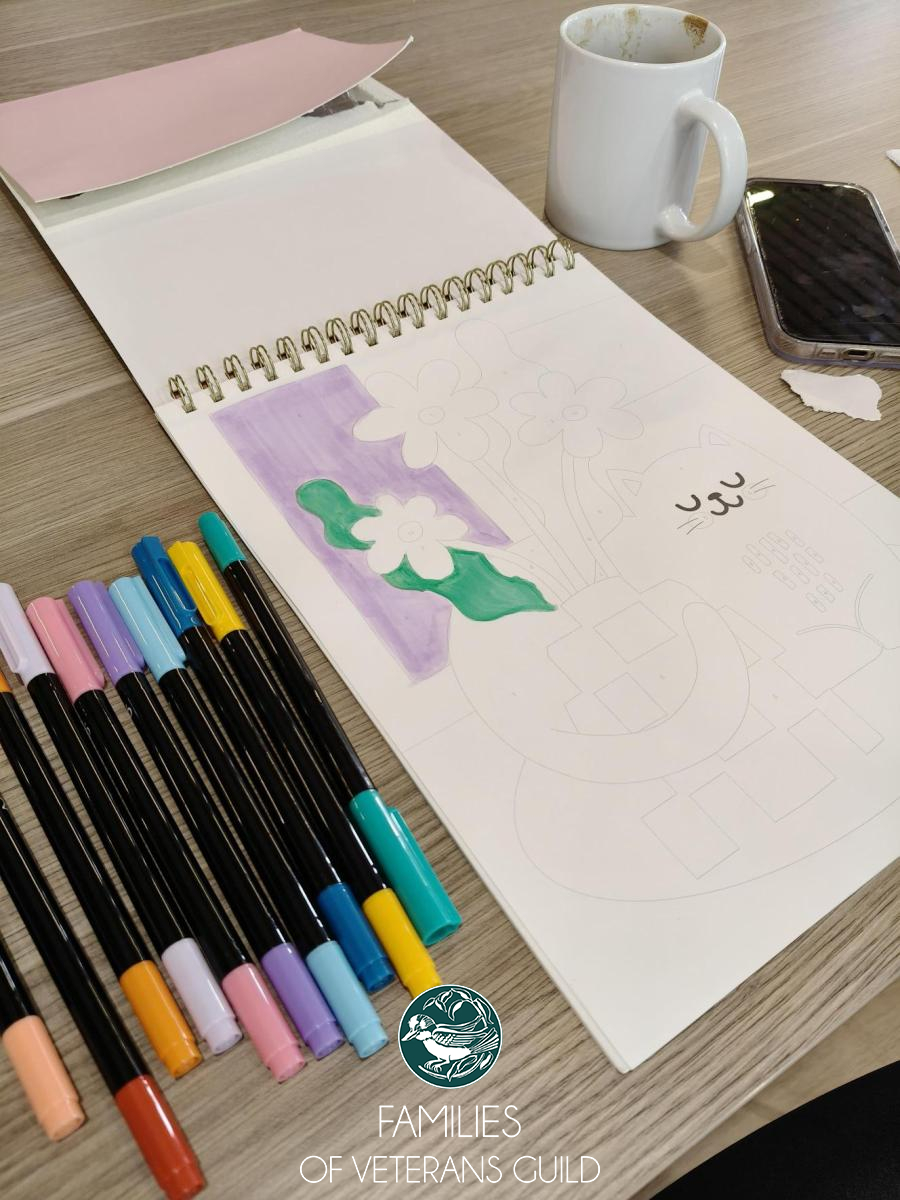 In January, families of veterans also joined an online vision board session designed to help participants reflect on their goals and intentions for the year ahead. Vision boards offer a creative way to visualise aspirations and stay connected to personal goals throughout the year, allowing you to transfer everything from mind to paper. Making a visually appealing board of your goals and intentions is an incredible way to kickstart any new year! During the session, participants explored the theme of identity through different sections of their boards, allowing for personal interpretation and creative freedom.