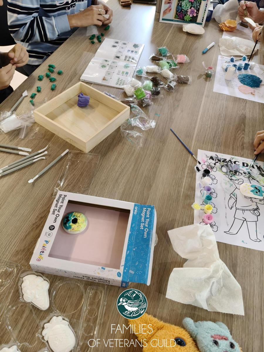 At the Queanbeyan Veteran and Family Hub in February, a morning of hands-on craft activities brought families together! Each attendee was provided a kit of their choice; gem art, painting sea shells, candle making, or clay art. With the variety of crafts going on, everyone had a chance to make a unique creation and see the other kits being made alongside some morning tea and chatter.