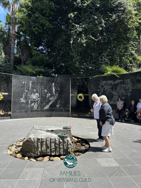 At the Memorial Centrepiece, Board Member Jennifer Collins AM and member Wendy McKean laid a wreath on behalf of all families of veterans, a simple gesture that spoke volumes. Surrounded by greenery and the peaceful setting of the walkway, the group paused to pay respects before continuing on the guided tour. The walkway’s peaceful beauty stood in stark contrast to the harsh conditions endured by soldiers, making the experience deeply moving but remaining a peaceful walk as a group.