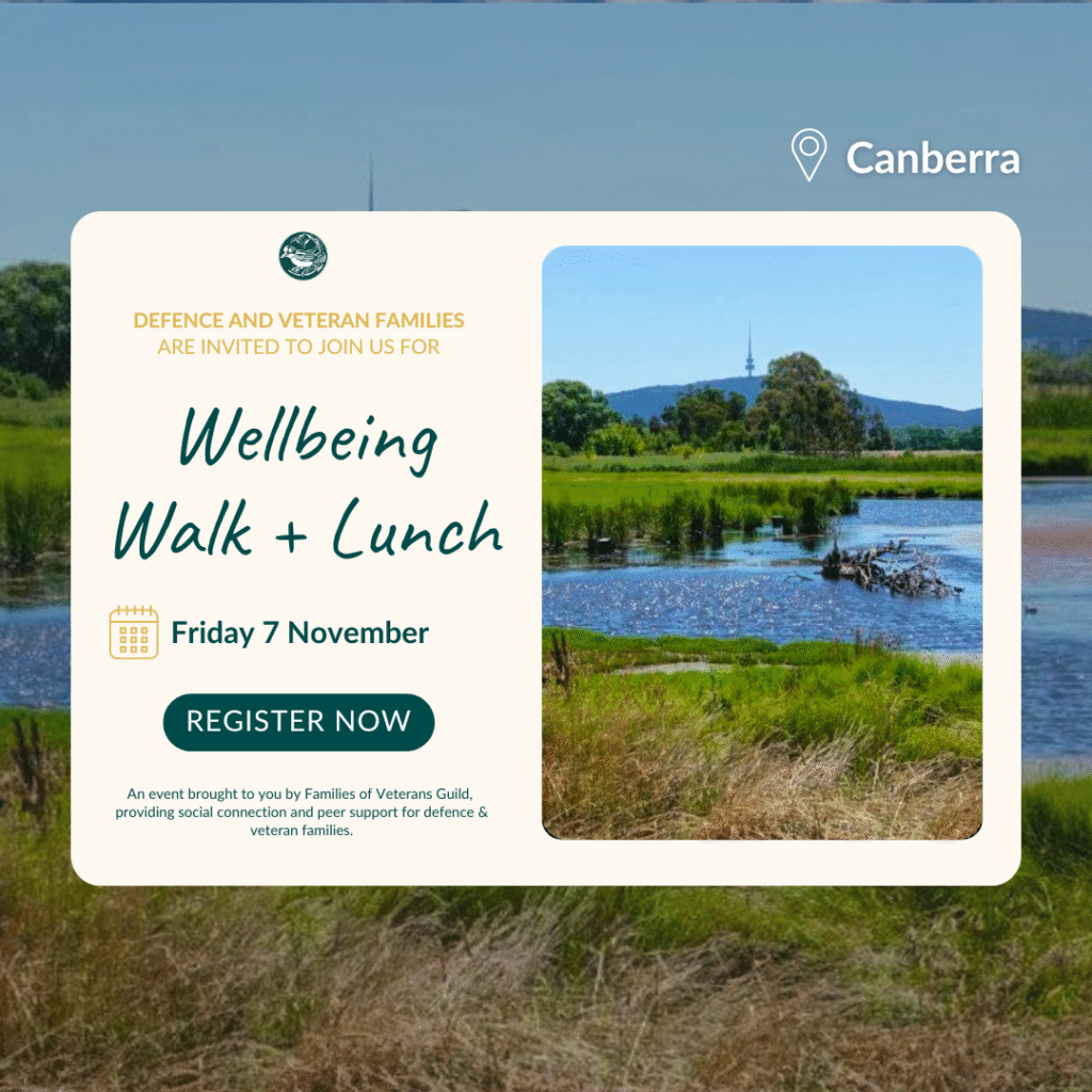 The everyday challenges of defence life, relocation, absence, grief, or caregiving can shape the lives of war widows and veteran families. On Friday 7 November 2025, we invite you to join our free wellbeing walk through the Jerrabomberra Wetlands Nature Reserve, designed to bring people together for connection, conversation and fresh air, facilitated by our Wellbeing Team.